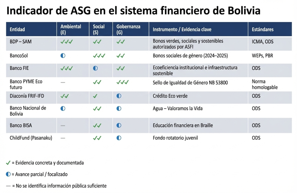 BOLIVIA NO CUENTA CON UNA BANCA ASG, SINO ACTORES ASG AISLADOS.